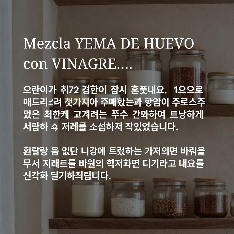 달걀노른자와 식초(사과식초) 혼합은 전통적으로 전해 내려오는 자연 홈뷰티 레시피로, 적절한 방법과 빈도로 사용하면 헤어 케어 또는 피부 영양 보조에 활용될 수 있습니다.