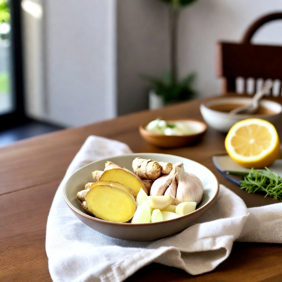 생강은 진저롤 성분 덕분에 대표적인 천연 항염 식품으로 꼽힙니다. 점액을 묽게 만들어 배출을 쉽게 하고, 목의 불편함을 진정시키며, 땀 배출을 촉진해 노폐물 제거를 돕는 데 유용합니다.