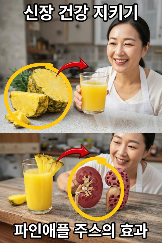 파인애플은 나트륨과 인 함량이 비교적 낮고, 비타민 C와 브로멜라인을 제공합니다. 일부 연구에서는 브로멜라인이 염증 완화에 도움이 될 수 있다고 보고하며, 이는 간접적으로 신장 건강에도 긍정적일 수 있습니다. 신장 식단 자료로 잘 알려진 DaVita 같은 기관에서도 신선한 파인애플이나 **무가당 파인애플 주스(적당량)**를 신장 친화 식단에 포함할 수 있다고 소개합니다.
