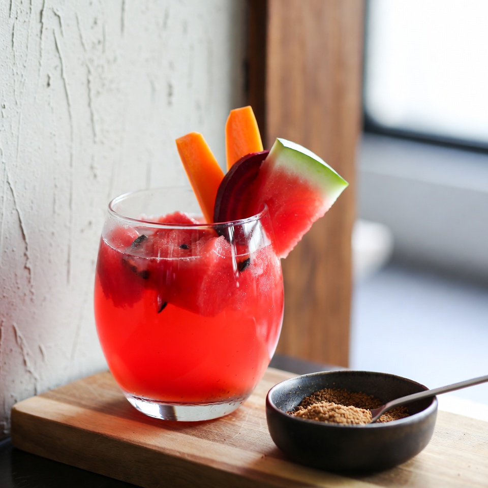 수박, 당근, 비트, 생강으로 만든 이 주스는 상쾌함과 영양을 함께 챙길 수 있는 균형 잡힌 자연 음료입니다. 몸을 가볍게 관리하면서도 맛있게 즐길 수 있는 건강한 선택이라 할 수 있습니다. 🍉✨