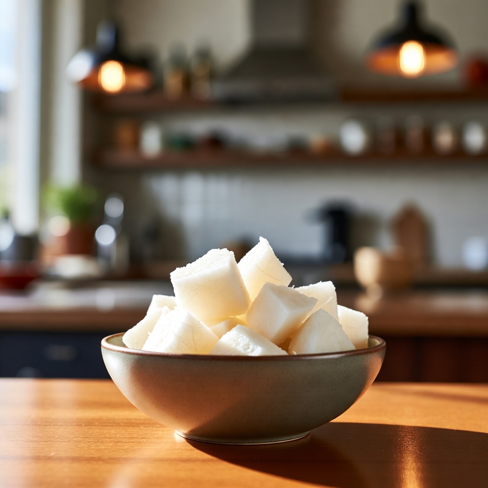 • 국물 요리에 유카를 넣으면 천천히 익으며 농도와 식감을 더해 줍니다. 스튜나 조림에 넣어도 잘 어울립니다.