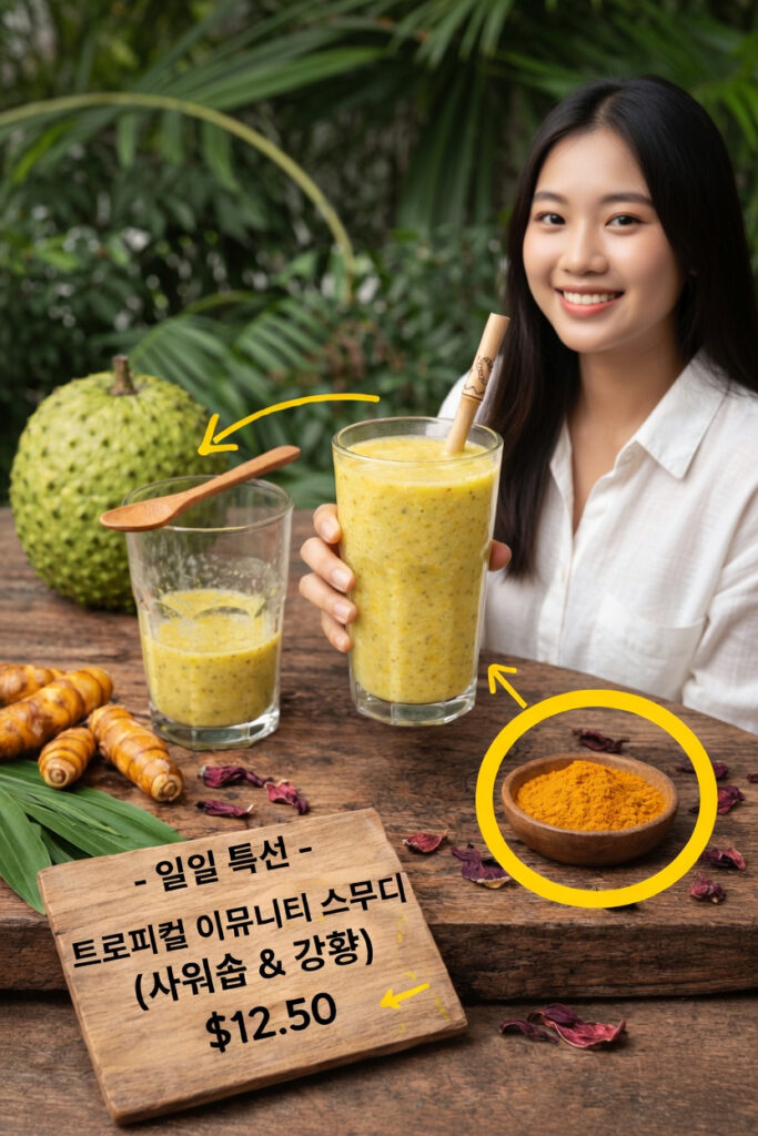집에서 직접 만드는 이 열대 면역 스무디는 신선한 풍미와 간단한 웰빙 습관을 동시에 선물해 줍니다. 복잡한 준비 없이도 맛있고 기분 좋은 한 잔을 완성할 수 있어, 바쁜 일상 속에서도 충분히 실천 가능한 선택입니다. 사워솝의 부드러운 달콤함과 강황의 따뜻한 깊이가 어우러진 이 레시피는 아침, 간식 시간, 운동 후 어느 순간에도 잘 어울립니다.