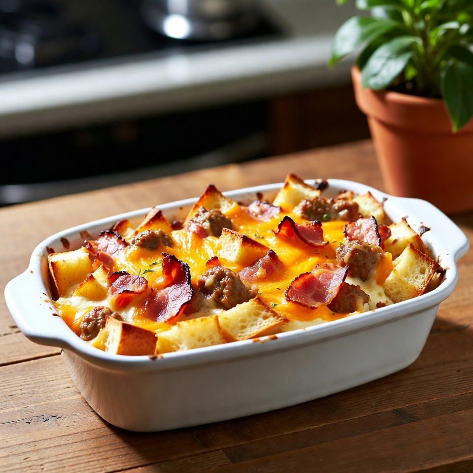 치즈와 베이컨, 사냥꾼 소시지가 듬뿍 들어간 이 브렉퍼스트 베이크는 아침식사나 브런치 메뉴로 딱 어울리는 든든한 오븐 요리입니다. 준비 과정이 간단하면서도 짭조름하고 고소한 풍미가 풍부해 많은 사람을 한 번에 대접하기 좋습니다.