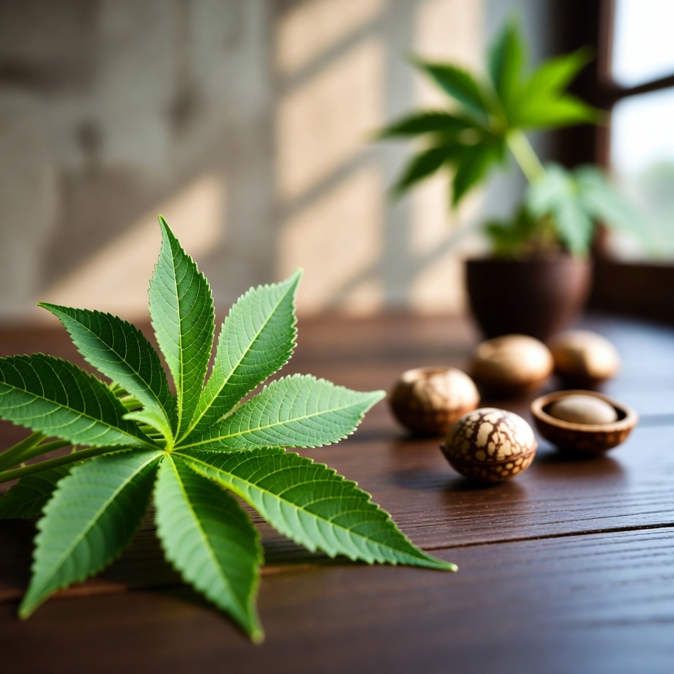 피마자 잎과 피마자 씨앗은 건강, 피부, 모발 관리에 폭넓게 활용할 수 있는 강력한 자연 자원입니다. 잎은 염증 완화, 상처 회복, 생리통 감소, 피부 진정, 면역 보조에 도움을 줄 수 있고, 씨앗에서 얻은 피마자유는 변비 완화, 두피 영양 공급, 피부 보습, 감염 관리 등에 유용하게 쓰일 수 있습니다.